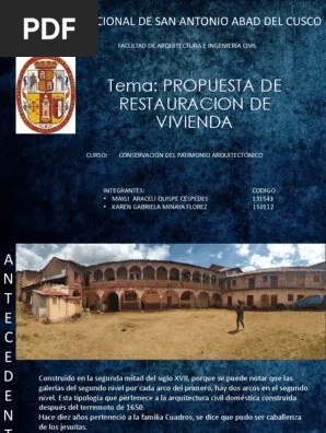 En las concentraciones urbanas nos encontramos con todo tipo de. Documentos técnicos del centro de investigacion … El augur trazaba en el espacio un templo simbólico con su báculo (especie de bastón), y en aquel ámbito interpretaba las señas, que podían ser buenas o malas. La evolución de la arquitectura civil domestica arequipeña presenta tres características, esquemas estructurales constantes dentro de cada periodo, ausencia de solución única y superposición de elementos en distintos periodos, la evolución esta marcada por las reconstrucciones que se realizan después de los sismos... Documentos técnicos del centro de investigacion …