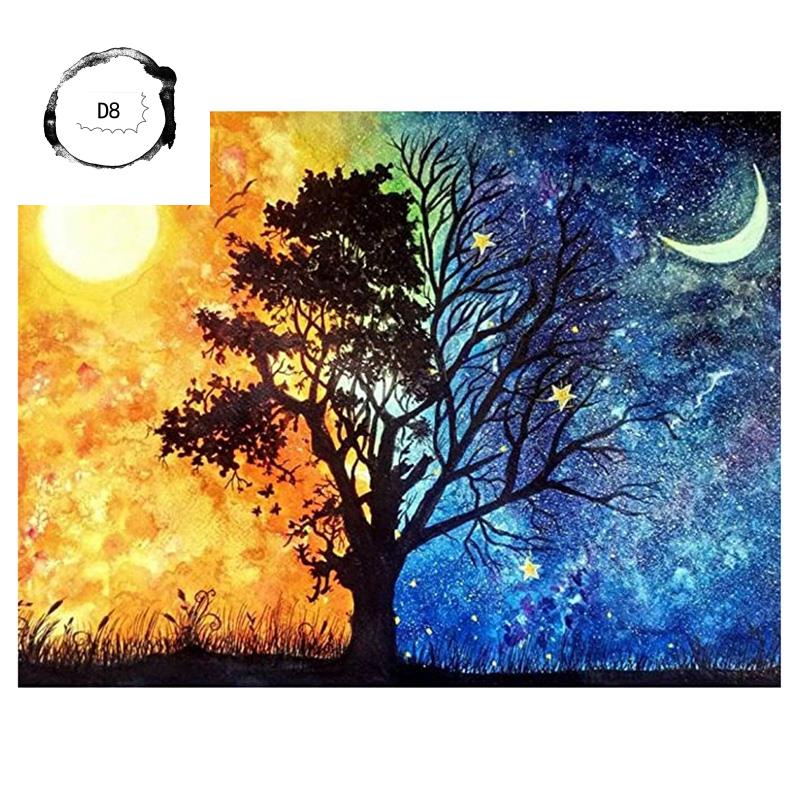 Mejor Amazon Com Kit De Pintura Al Oleo Para Ninos Y Adultos Para Principiantes De 16 0 X 20 0 In Arbol Del Sol Y La Luna Dibujo Con Pinceles Decoracion De Navidad Regalos Arte